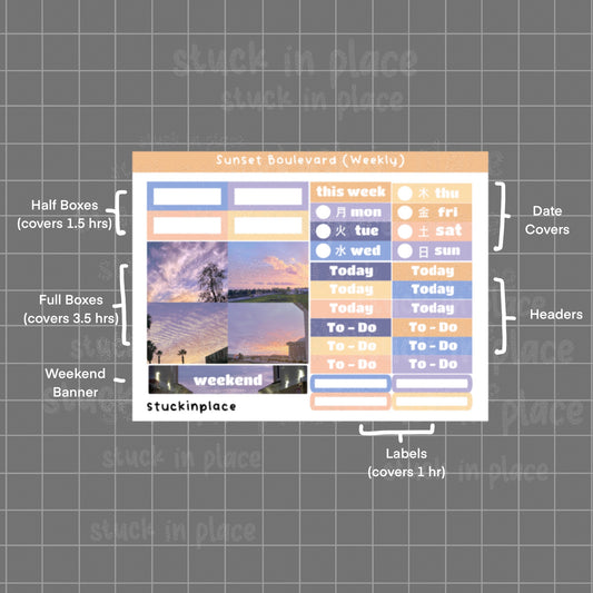 Sunset Boulevard Hobonichi Techo Cousin Weekly Sticker Kit