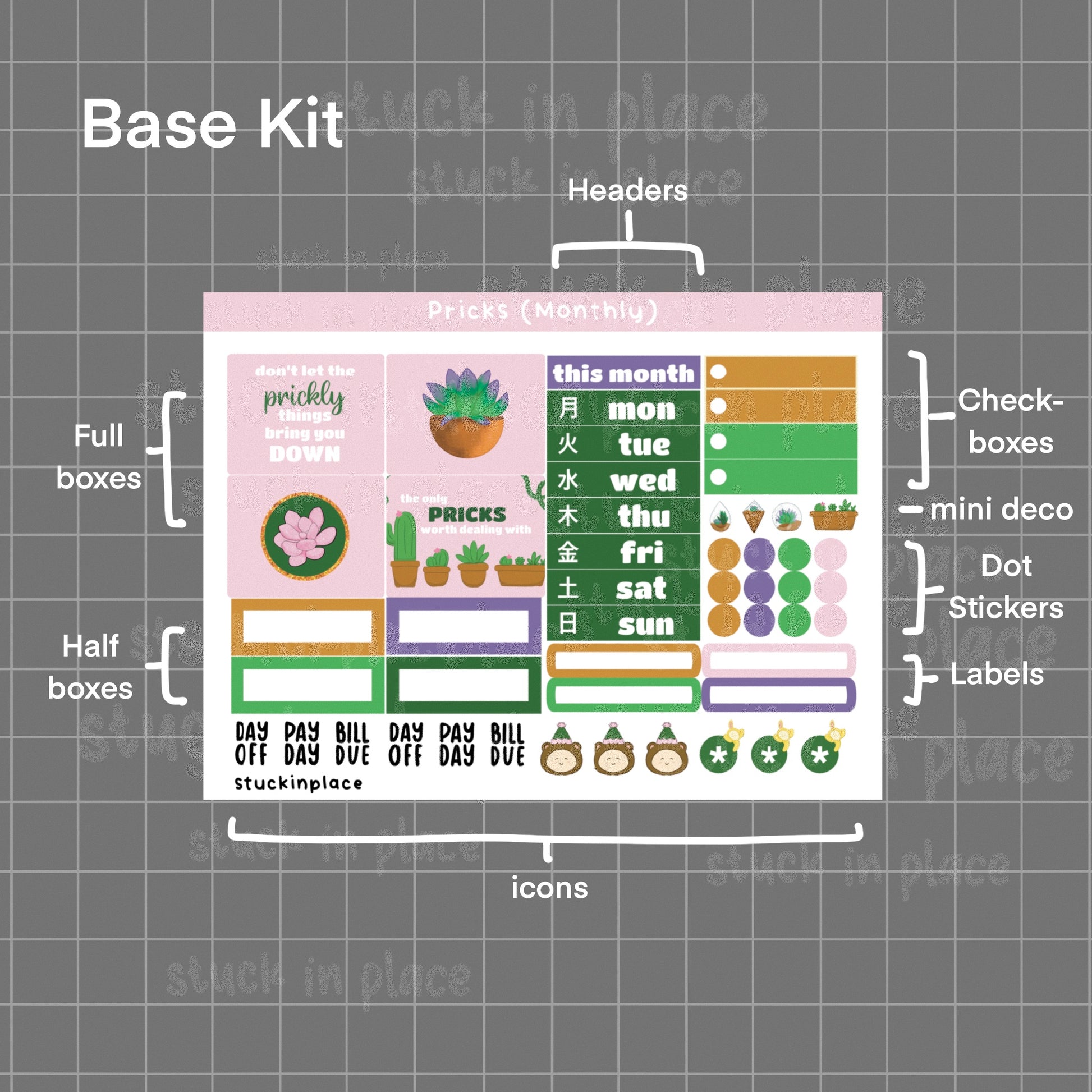 Pricks Hobonichi Techo Cousin Monthly Planner Stickers